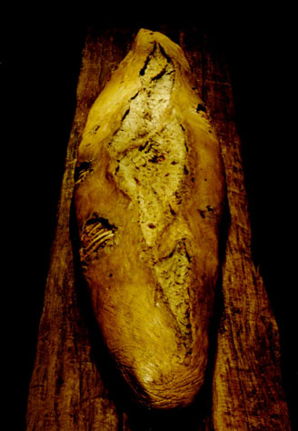 Instalación "El cuerpo del pan" Cemento, madera y hueso. Installation "Le corp du pain". Ciment, bois et ossements.