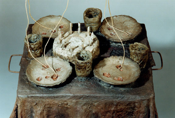 « Modus vivendi », cemento, madera, cera, papel. « Modus Vivendi » ciment, bois, cire, papier.