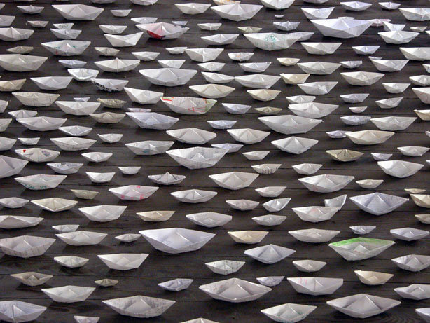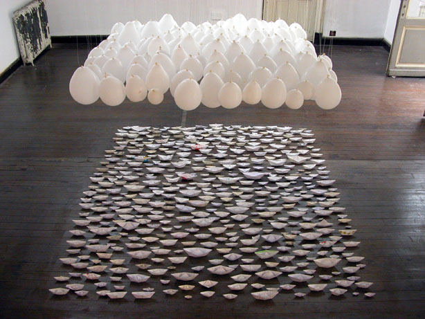 Au début il y à le désir: “Quand je sois docteur je vais guérir les morts.”Les rêves que les enfants déclarent déclament ont été soigneusement requeullis par (F.Arnaud,Salto 1970) Les désirs des enfants uruguayens sont touchés (comme la plus part des désirs humains)par une grande clarté. “Je voudrais bien être chanteur et policier ,monter à l’arbre le plus haut. du monde, être l’homme d’une épicerie”. Ils font référence à un espace intangible, au futur imagine: ils sont comme des pierres lancées au loin par les enfants ;au monde adulte. Ils renvoient aussi en arrière car ils se construisent de paroles et de gestes apprís, des nécessités les plus urgentes. Comme dans un voyage d’aller et retour, ils se transforment à la fois en pétition au monde magíque, une forme de supplier pour que les choses changent :”Monsieur, je veux un ordinateur. Mais si tu ne peux pas, je veux qu-on m’aime et que je puisse aller chez ma frangíne. Mais si tu ne peux pas envoie-moi un bateau en bois. Arnaud transforme les messages écrits par les enfants en une centaine de bateaux de papier sur lesquels il monte un ciel de ballons blancs. Métaphore de métaphores, ses paysages de l’inassible, le pays de la crise “Uruguay”avec une poésie esperancée et indomptable. L’opération créative par laquelle sont traversés les désirs métamorphosés en scénarios ludíques du rêve(ou de la rêverie) viennent signaler par contre un sens historíque du sujet comme utopie (u-topos, non lieu). C’est un paysage mobíle, pléthorique en fugues et intermédiations simbolíques:”on rêve avec tout ce qui aurait pu être”reflèctionait Gaston Bachelard remémorant son enfance-“On rêve à la limite de l´histoire et de la légende”(Poèthíque de la rêverie,1960)
